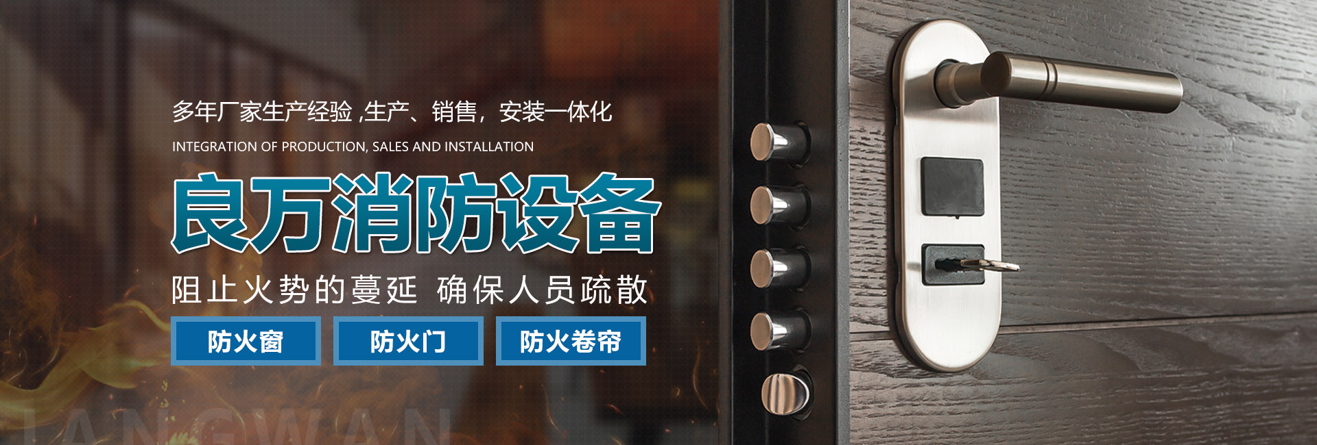 合肥良萬消防設(shè)備有限公司位于合肥市包河工業(yè)園,生產(chǎn)銷售安裝:防火門、防火卷簾門、防火窗等消防安全產(chǎn)品。公司具有研發(fā)、設(shè)計(jì)、生產(chǎn)、銷售、及安裝服務(wù)的綜合配套能力。合肥良萬消防設(shè)備有限公司技術(shù)力量強(qiáng),設(shè)備齊全,產(chǎn)品不斷創(chuàng)新,以信譽(yù)立業(yè),客戶滿意是我們永無止境的追求。我們在保證產(chǎn)品質(zhì)量的同時(shí),也十分注重售后服務(wù),保證消防安全產(chǎn)品的正常運(yùn)行。公司始終堅(jiān)持誠信為本的企業(yè)宗旨,真誠希望與社會各界新老客戶精誠合作,良萬愿與您攜手共創(chuàng)輝煌!